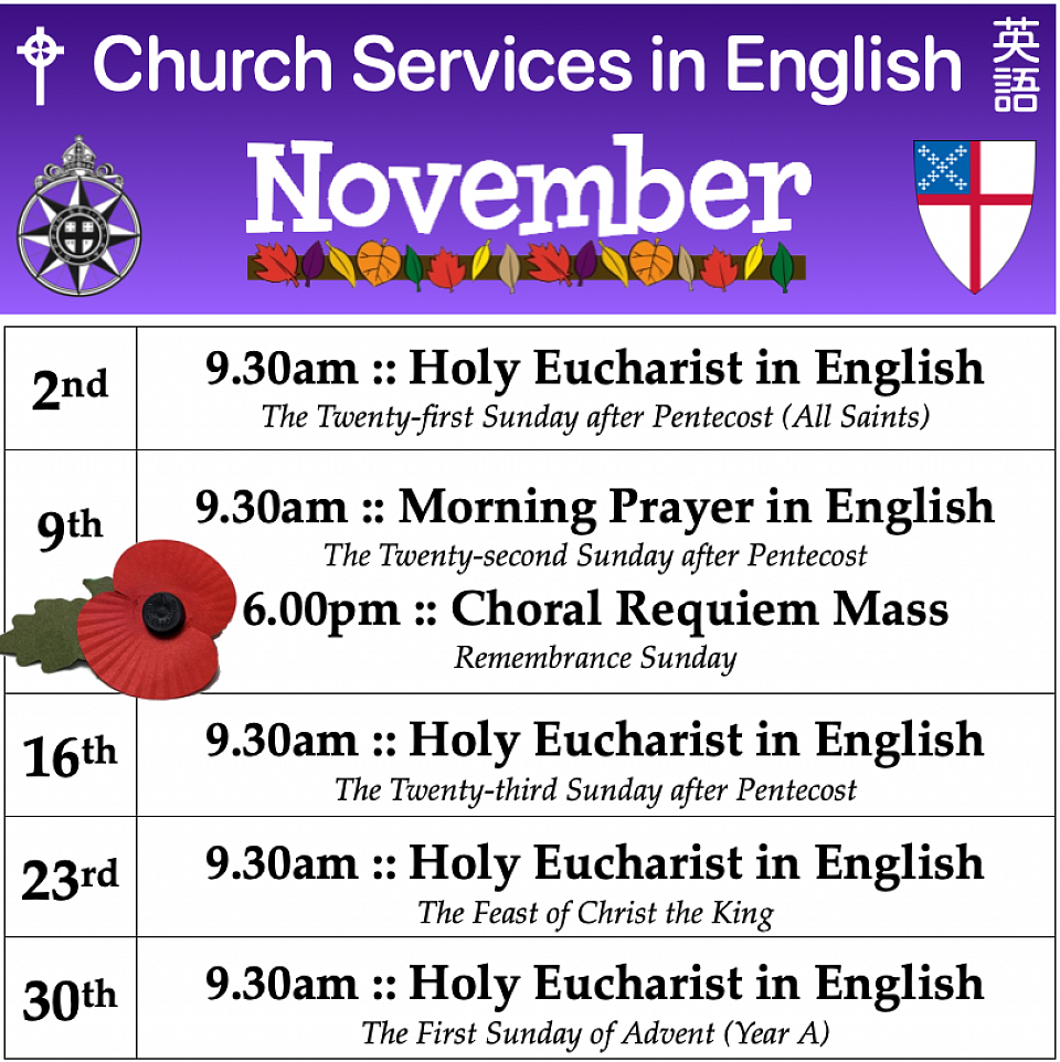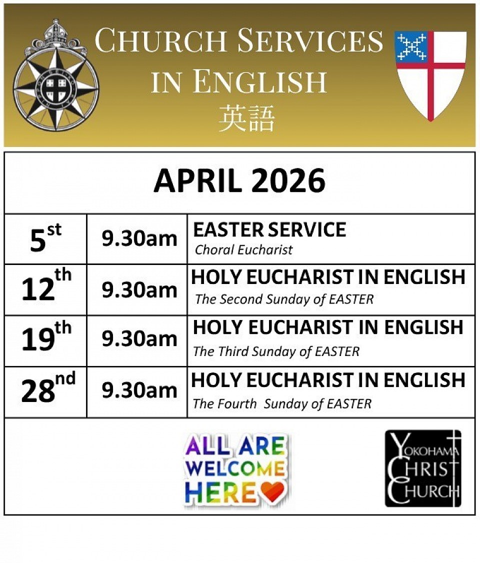 Yokohama Christ Church is an English speaking congregation within the Yokohama diocese of the “Nippon Sei Ko Kai”, which is part of the world-wide Anglican Communion. All are welcome to attend services. The congregation at Yokohama Christ Church is a friendly community, representing many nations and denominations joined together in liturgical worship, communion, and fellowship.